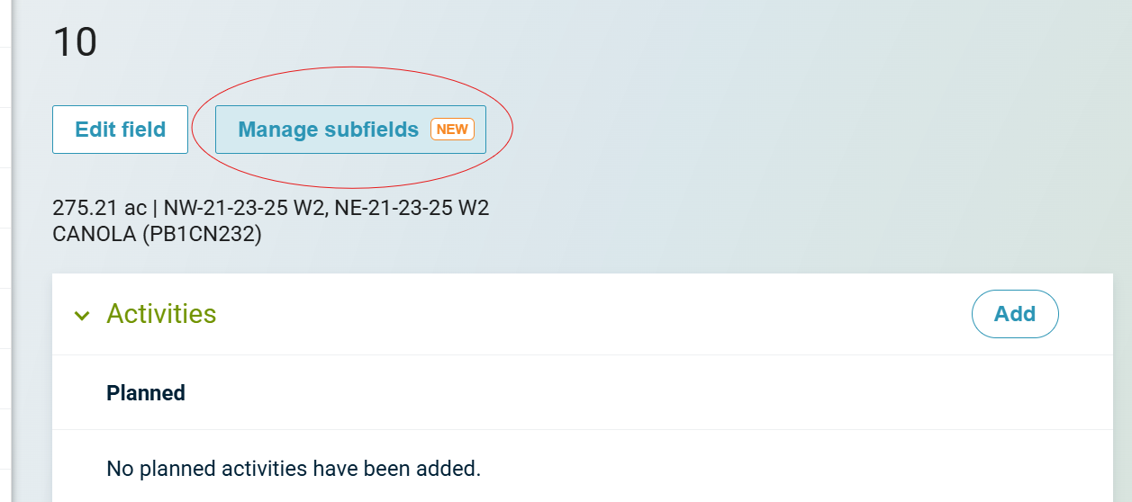 Now available - Field Splitting and the utilization of subfields will allow users to be more accurate in where specific crops and applications are being placed within a main field. If you have any questions, please feel free to reach out! Click on Fields > Existing or new field to get started: